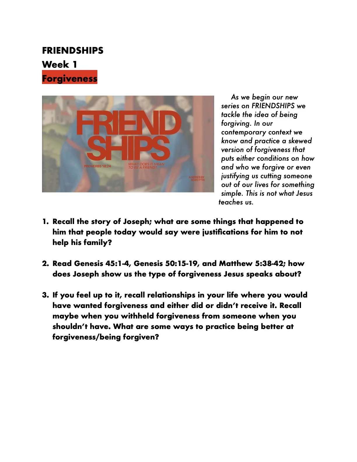 Forgivness Genesis 50:15-21